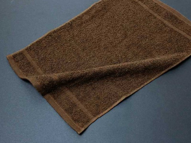 やや長めのパイルで丁寧に織り上げられた日本製の長方形おしぼり。やわらかな肌ざわりと薄手でしぼりやすいのが特長です。汚れが目立ちにくい濃色のブラウン。