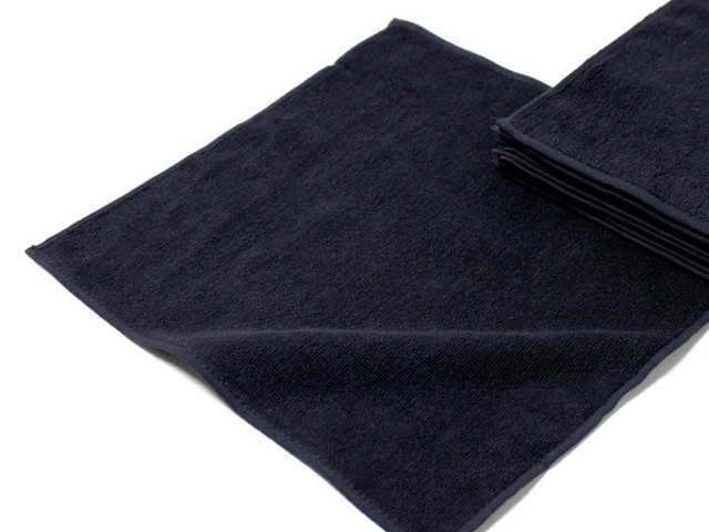 コンパクトな30cm角の黒おしぼり。誤って糸を引っ掛けにくいショートパイルのレピア織りで、色落ちに強いスレン染めだから、耐久性抜群です。焼き肉店、ラーメン店、BARなどの飲食店におすすめ。