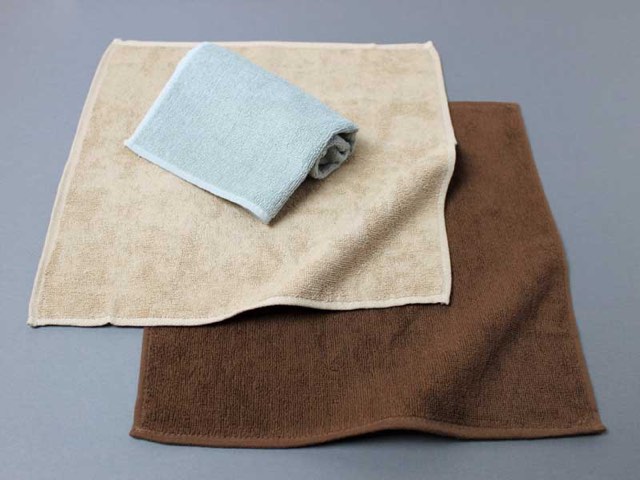 シックな色合いの正方形おしぼり。パイルが長めで、厚みもしっかり。有害物質検査済みなので、口や手に直接触れるおしぼりとして、安心してお使いいただけます。